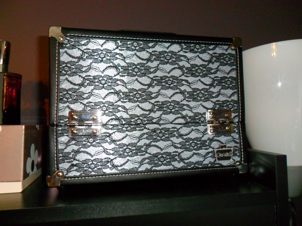 The first beauty related item I received from my parents was this lace decorated train case. I have been looking for a train case for ages and now I finally have one. The size is perfect and it holds so much stuff. This one is by Caboodles and they got it in the States.
